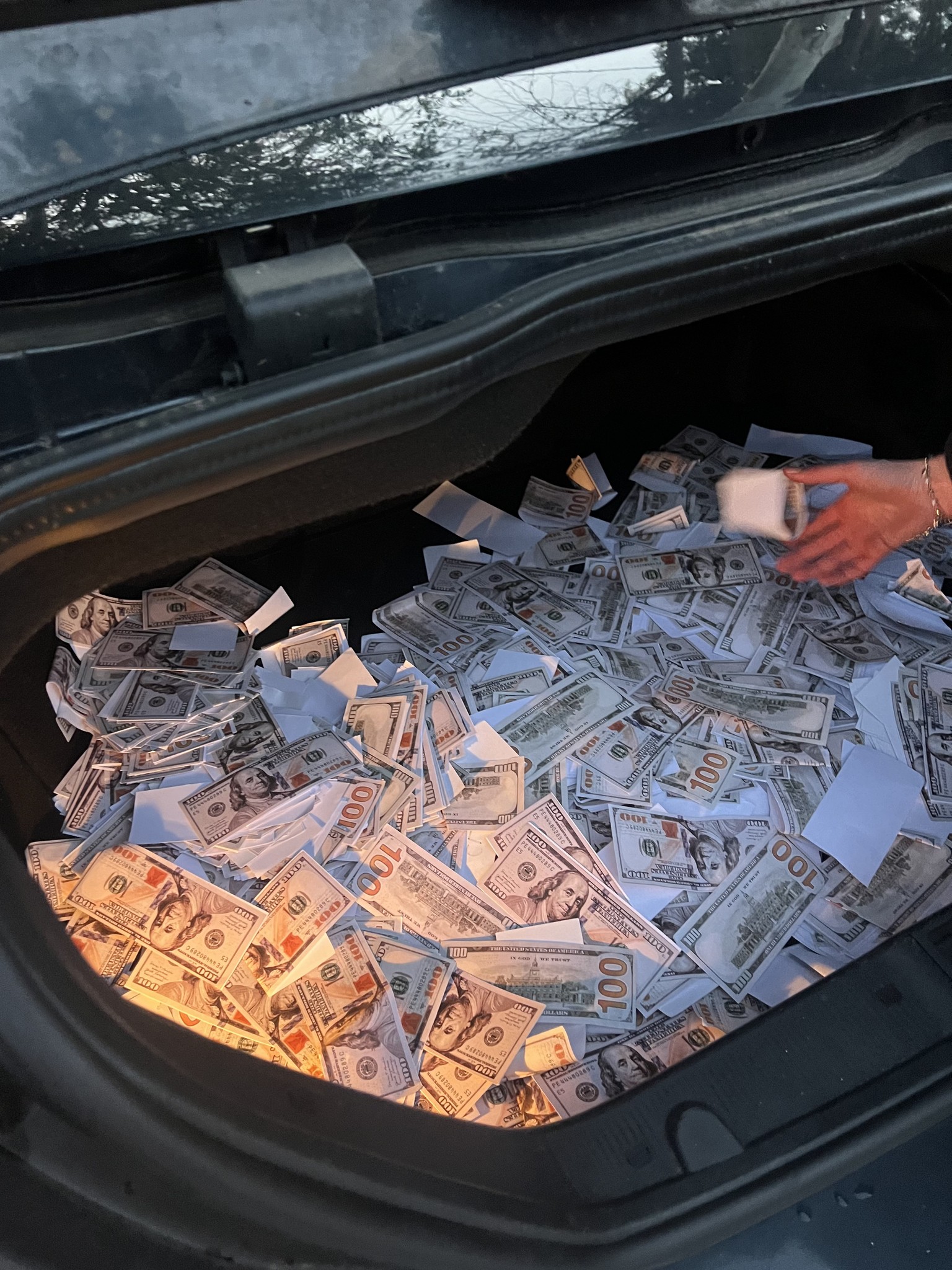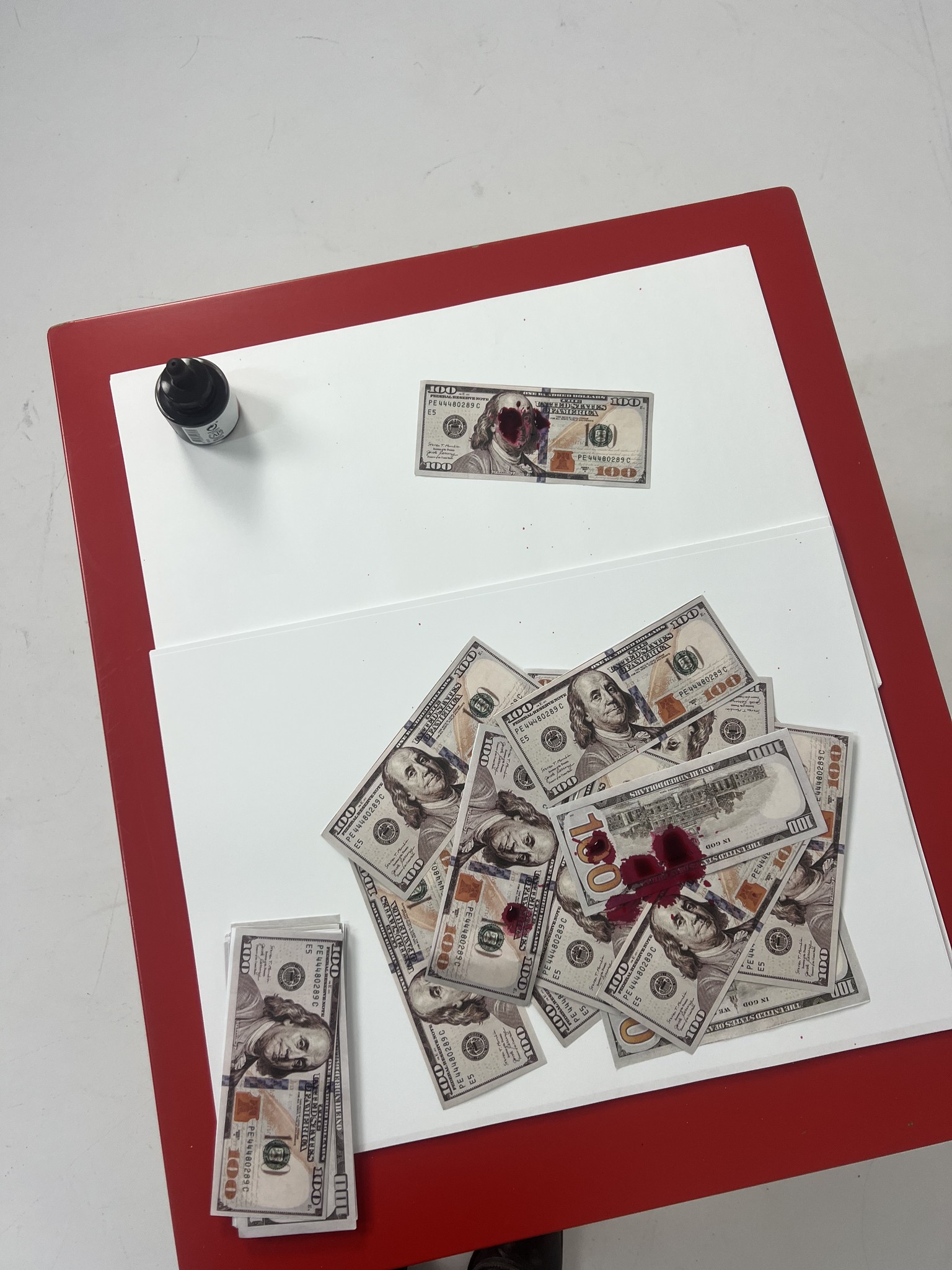 MOST OF THE FOOTAGE WAS FILMED BY MYSELF, EXCEPT THE OPENING ROAD AND LAKE SHOTS, THE CASH MACHINE, AND THE FINAL LAKE SCENE. I PRINTED HUNDREDS OF 100 DOLLAR BILLS AND CUT EACH ONE OUT TO MAKE THE MONEY LOOK REAL. THESE WERE USED IN ALL THE SCENCE, INCLUDING THE WASHING MACHINE, BLOOD DRIPPING, IN THE TRUNK ETC.