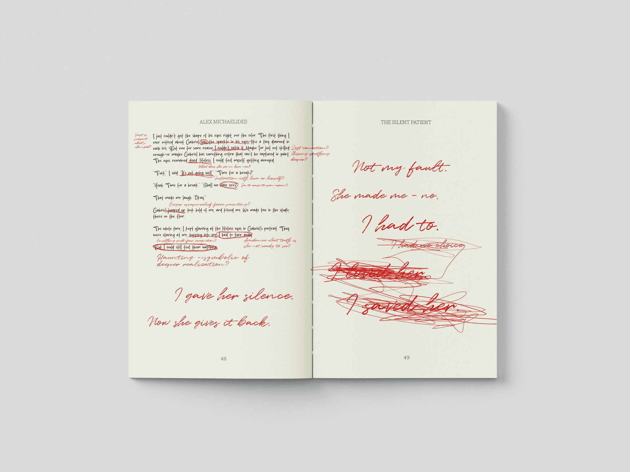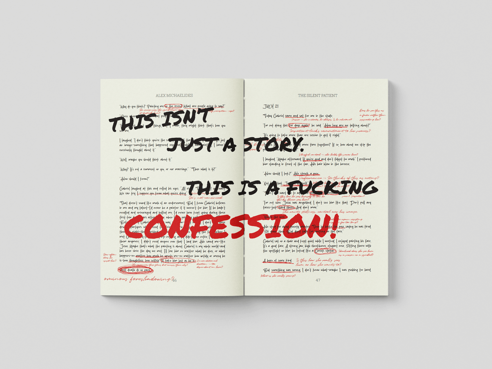 THIS REDESIGN OF THE SILENT PATIENT IS BUILT AROUND THE CONCEPT OF SILENT ECHO — THE IDEA THAT SILENCE IS NOT EMPTY, BUT A DISTORTED REFLECTION OF TRUTH. THROUGH A MINIMAL, TYPOGRAPHY-LED APPROACH, SUBTLE SHIFTS AND CONTROLLED NEGATIVE SPACE SUGGEST FRAGMENTATION, REPRESSION, AND PSYCHOLOGICAL TENSION.